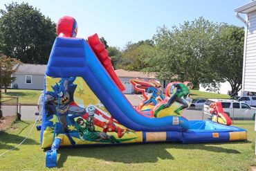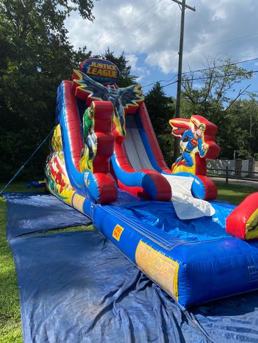 Dc Justice league waterslide can be used wet or dry with a detachable pool